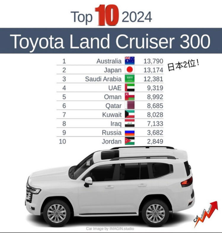 それはランクル300の世界国別販売台数ランキングなるもの。
