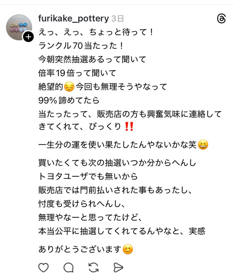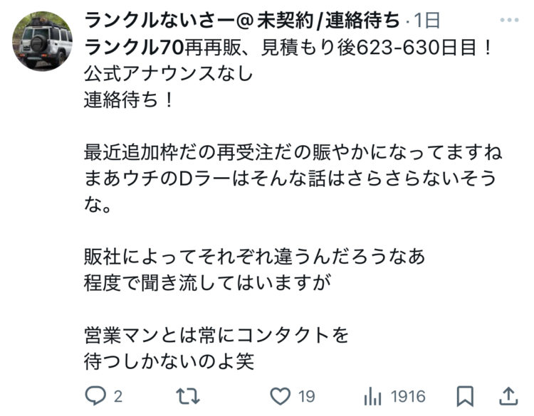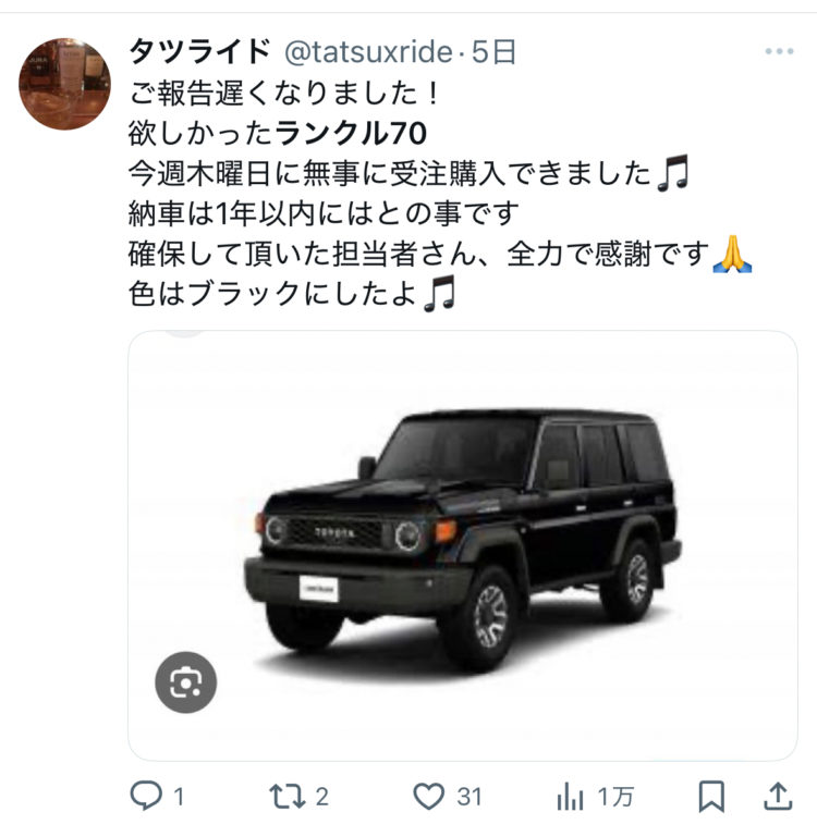 先日、再再販ランクル70の受注が再開したのではと記事にしたところ。