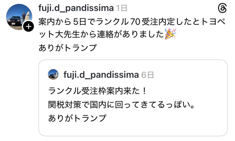 先日、再再販ランクル70の受注が再開したのではと記事にしたところ。