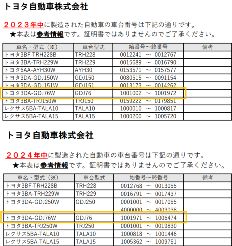 まず、GDJ76は「1002」からスタート、とあるので、これを確認する。