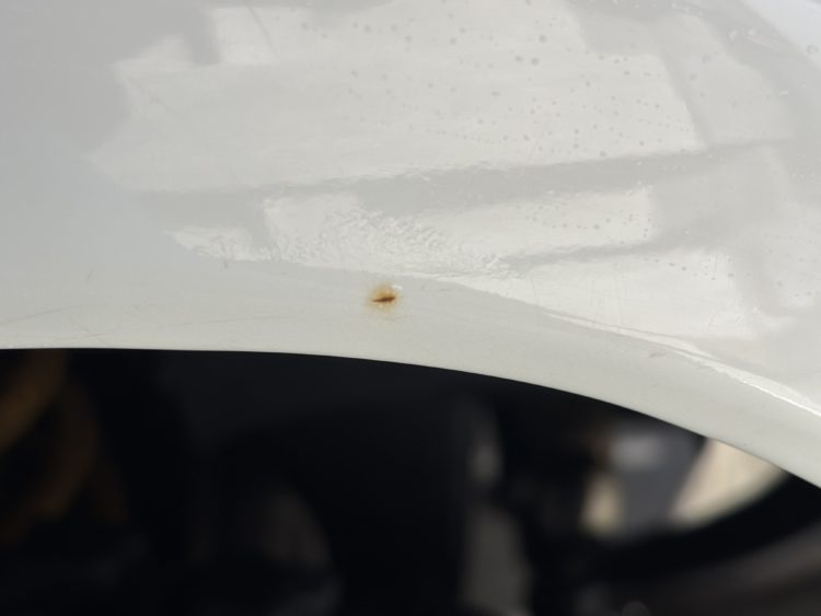 ぱっと見気になるほどのものではないが、よく見ると小さな錆が見えて、その周囲の塗装が浮いている。