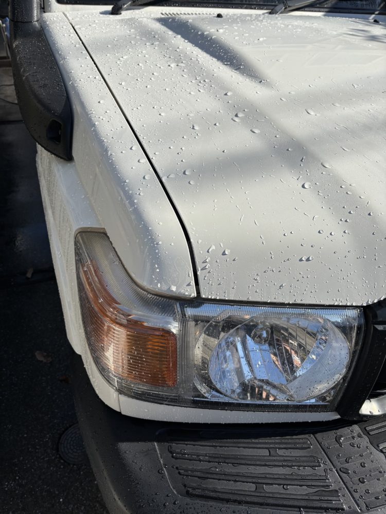 そして、より全体的な問題としては、ボディのホワイトの「オフホワイト」化。青空駐車の日差しと海からくる塩分まじりの空気のコラボがなせる業なのか?