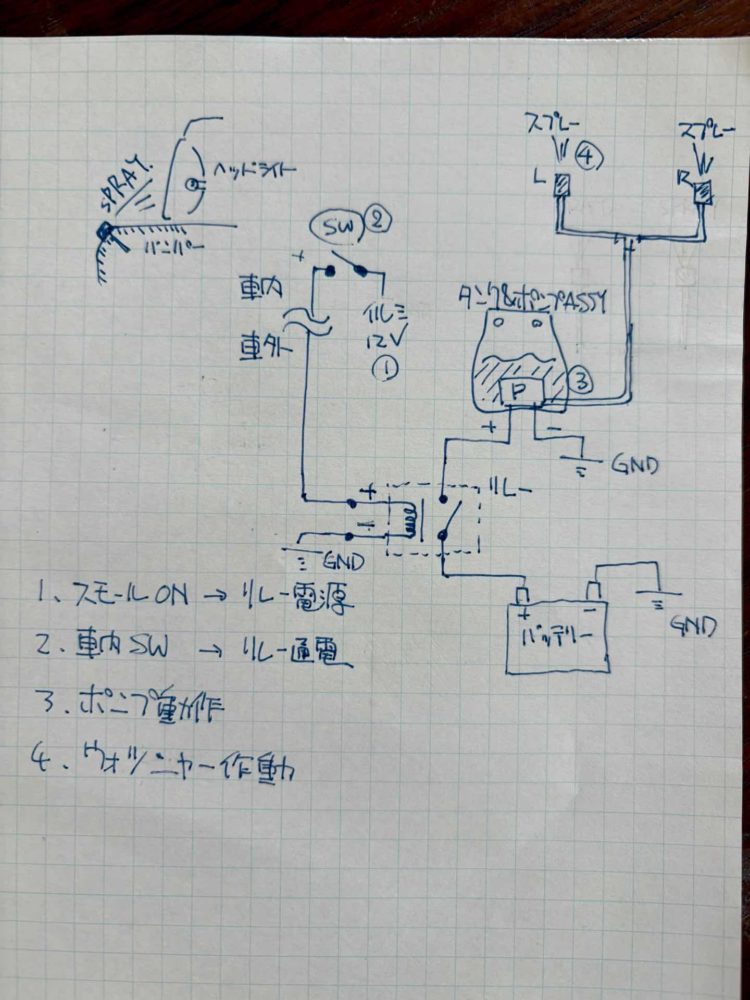 激安ヘッドライトウオッシャー、日曜日のRVパークのスノーチャレンジに間に合わせるべく、取付けました。
