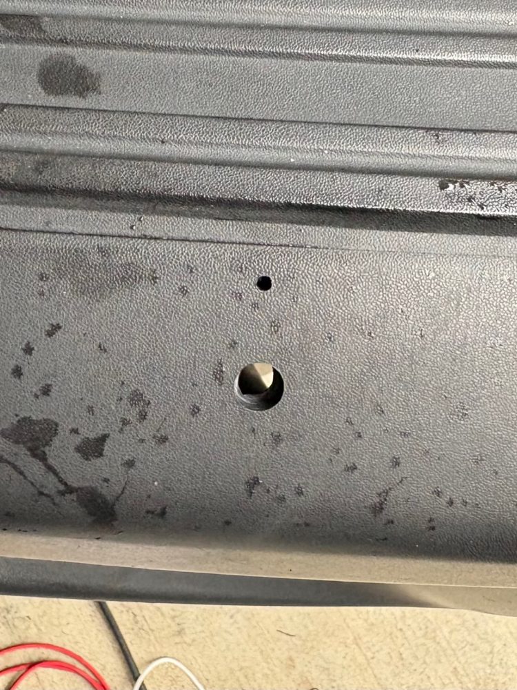 実は片方下穴開けてからフレームの存在に気付いたので、運転席側だけ失敗して小さい穴を開けてしまいました。