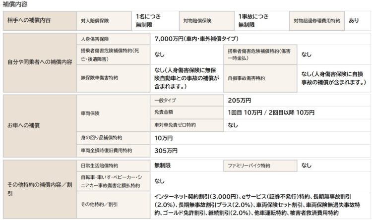 全損にならない限りは、自爆で電柱に衝突しても救われるようになったし、かなり充実した補償にする事ができた。また一年、事故なく過ごせる事を願うばかり。